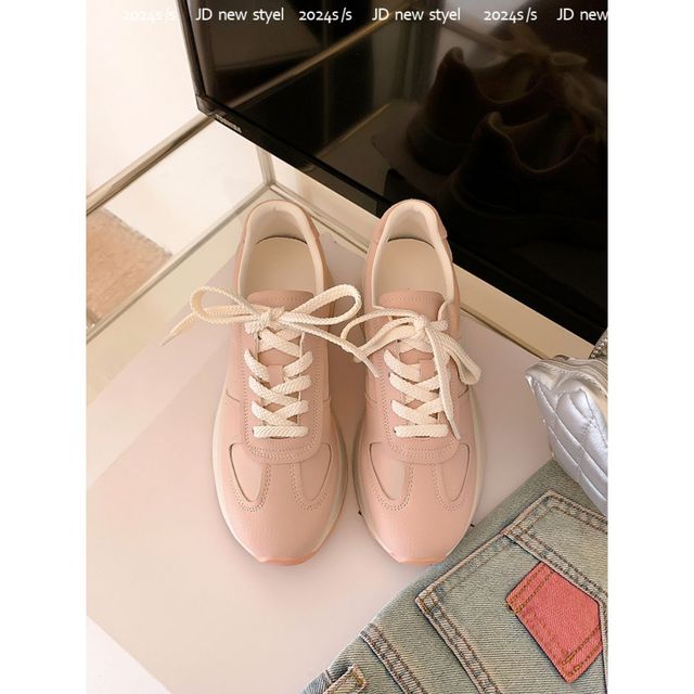 牛皮德訓鞋|復古厚底阿甘風 粉色(35-40)